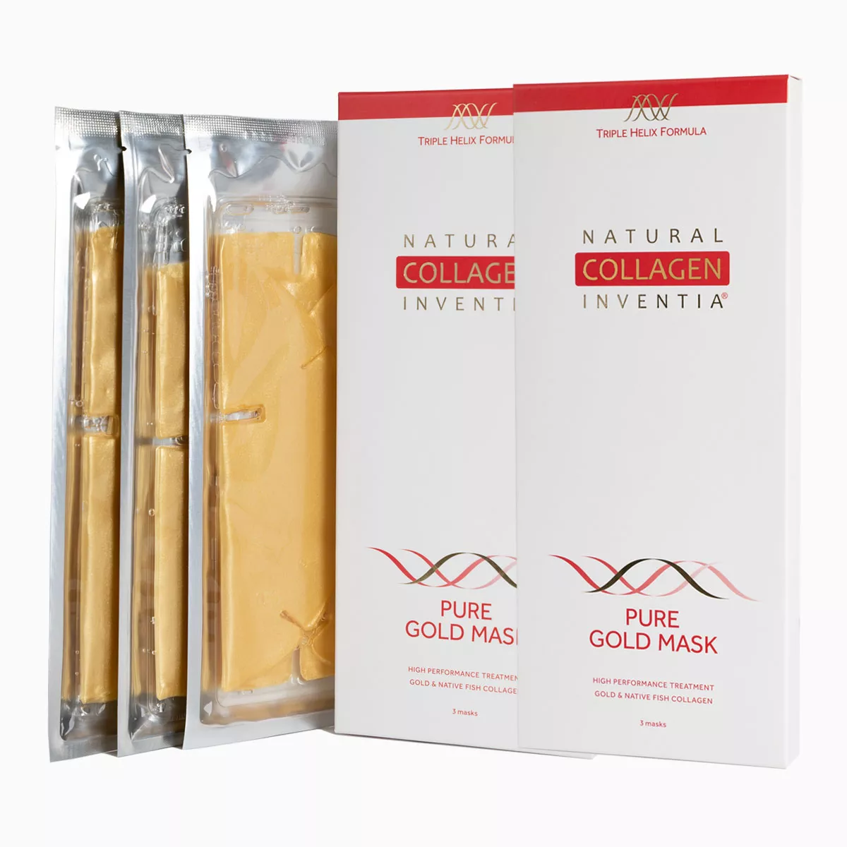 1 + 1 ZDARMA - INVENTIA PURE GOLD MASK WITH NATIVE FISH COLLAGEN - ZLATÁ MASKA S ŽIVÝM KOLAGENEM - 2x 3 ks - Triple Helix Formula